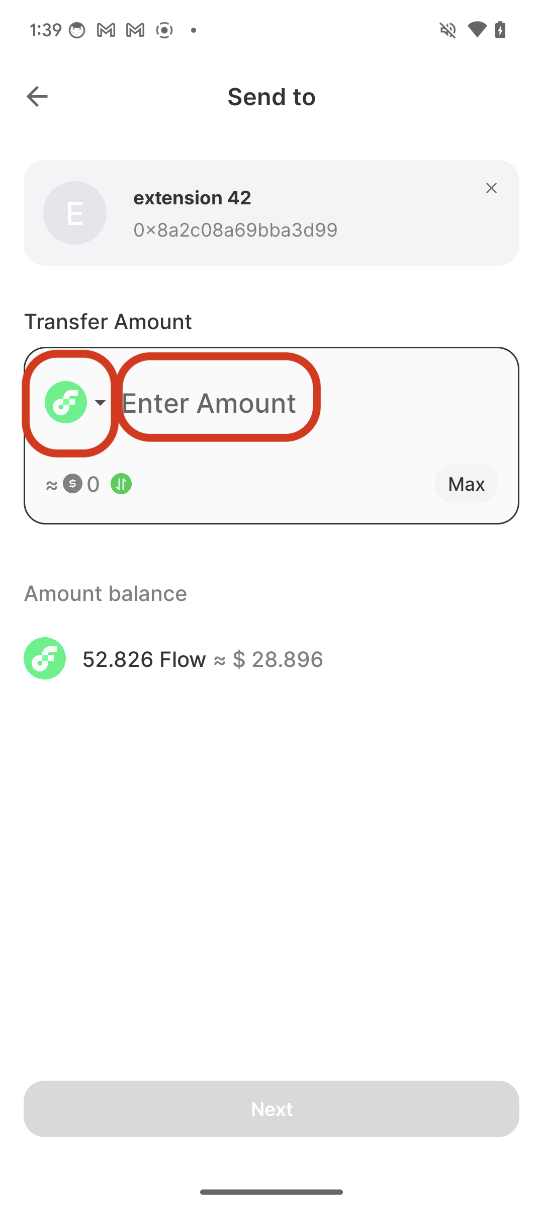 Step 4: Enter the recipient's COA/other Flow account address.